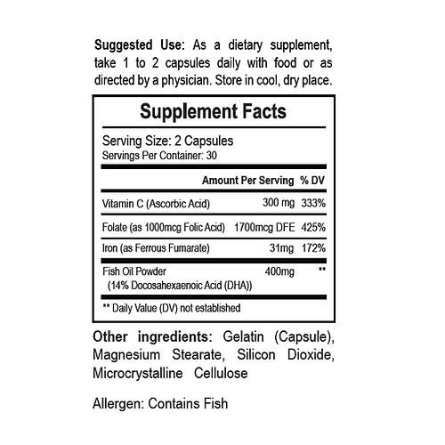 Broad Iron Plus is a dietary supplement that contains Iron, Folic Acid, Vitamin C with Omega-3 DHA. Its essentials for pregnancy.