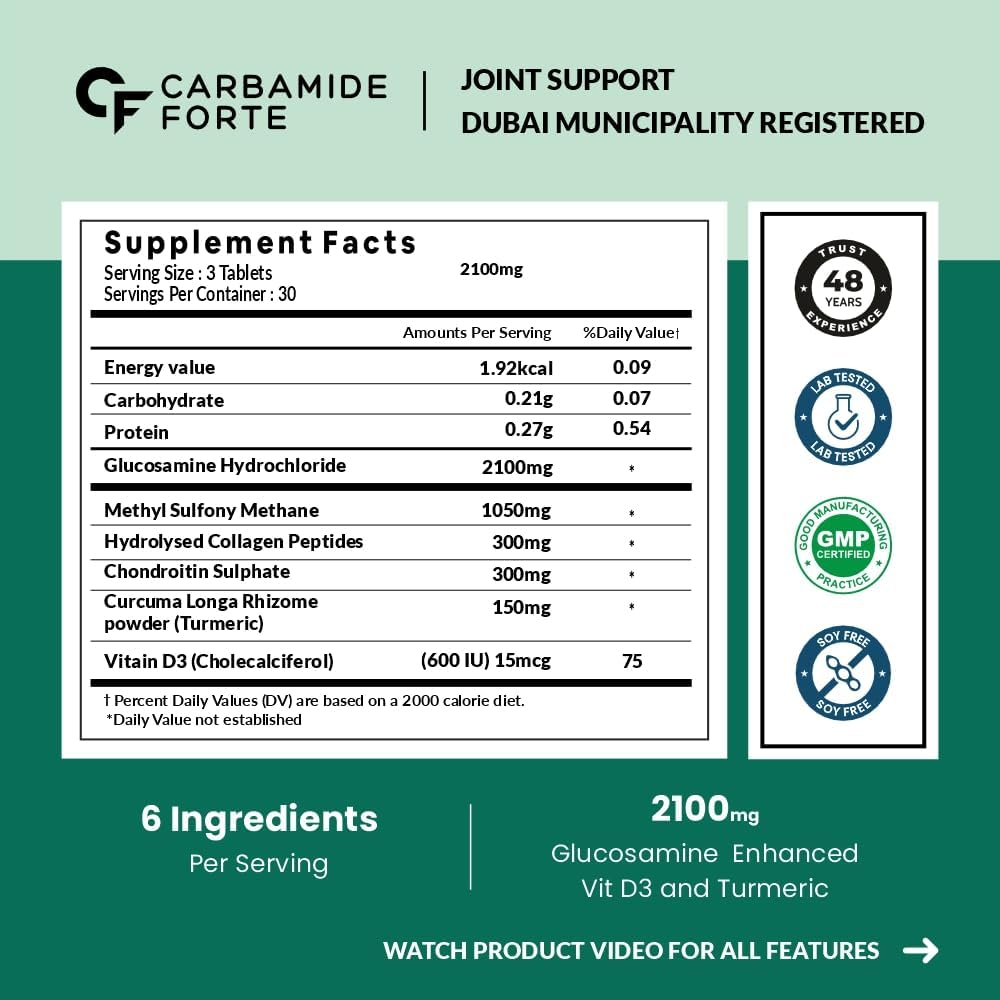 Carbamide Forte Glucosamine Chondroitin MSM - Joint Support Supplements | Supports Joint, Cartilage & Muscle Health, 3900mg Per Serving | Joint support supplement for men & women – 90 Tablets