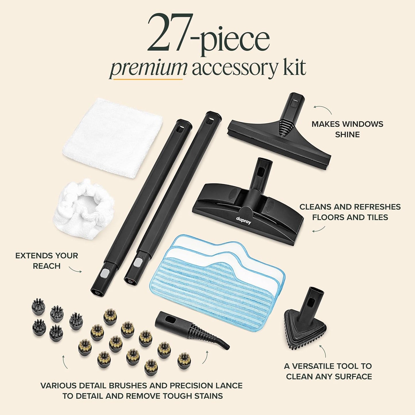 Versatile 27-Piece Kit: Features a range of tools for cleaning floors, tiles, grout, car interiors, and more, providing a complete all-in-one cleaning solution for various needs.