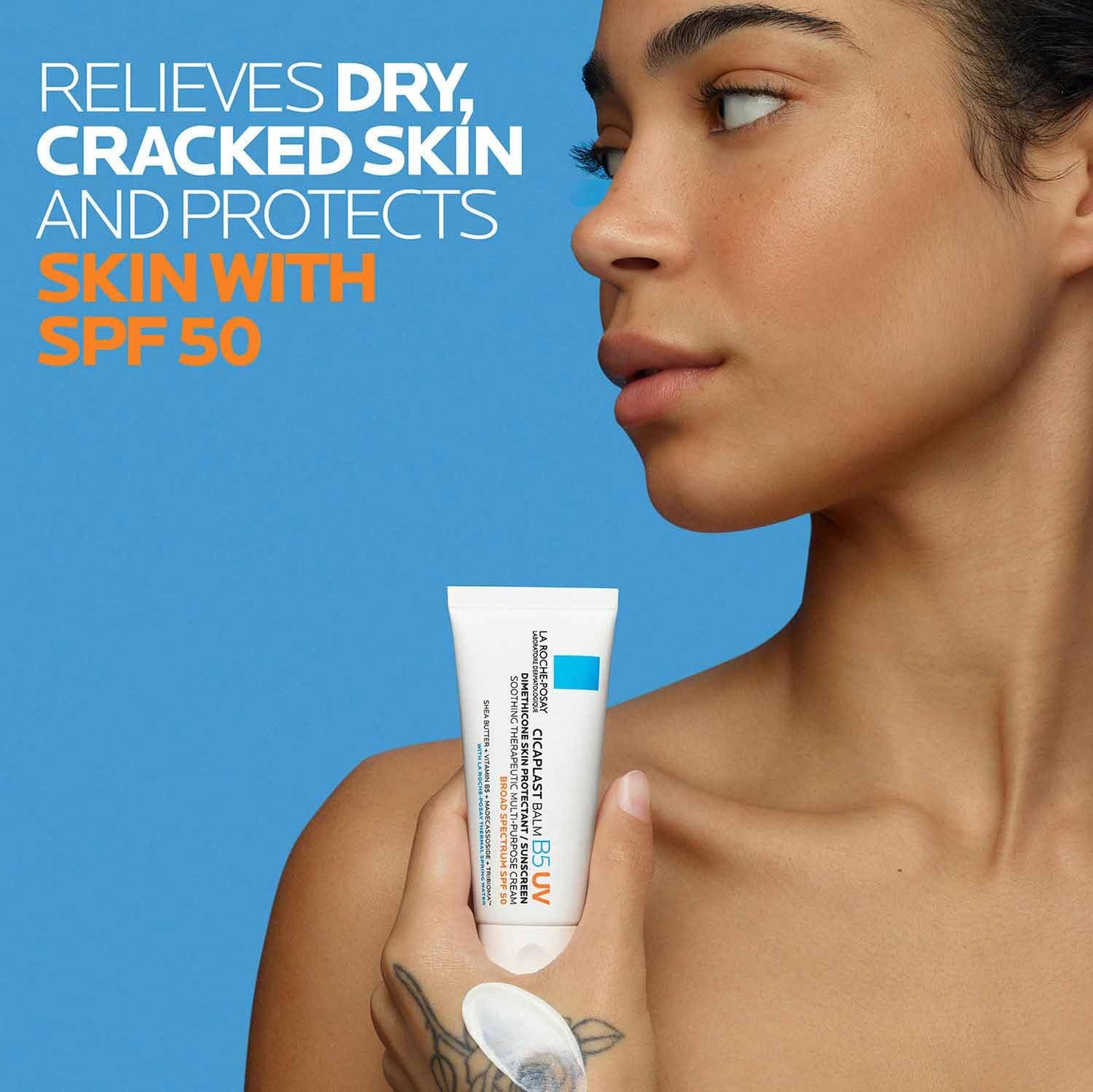 This versatile repairing balm is expertly formulated with madecassoside and La Roche-Posay's renowned thermal spring water to soothe and nourish the skin. Enriched with 5% Panthenol (Vitamin B5), it not only softens but also strengthens the skin's natural barrier. The lightweight texture of Cicaplast Balm provides immediate relief from irritations, thanks to its innovative anti-itch formula. With added SPF 50, this balm is ideal for soothing sunburn, insect bites, and dry skin while offering protection against harmful UV rays.