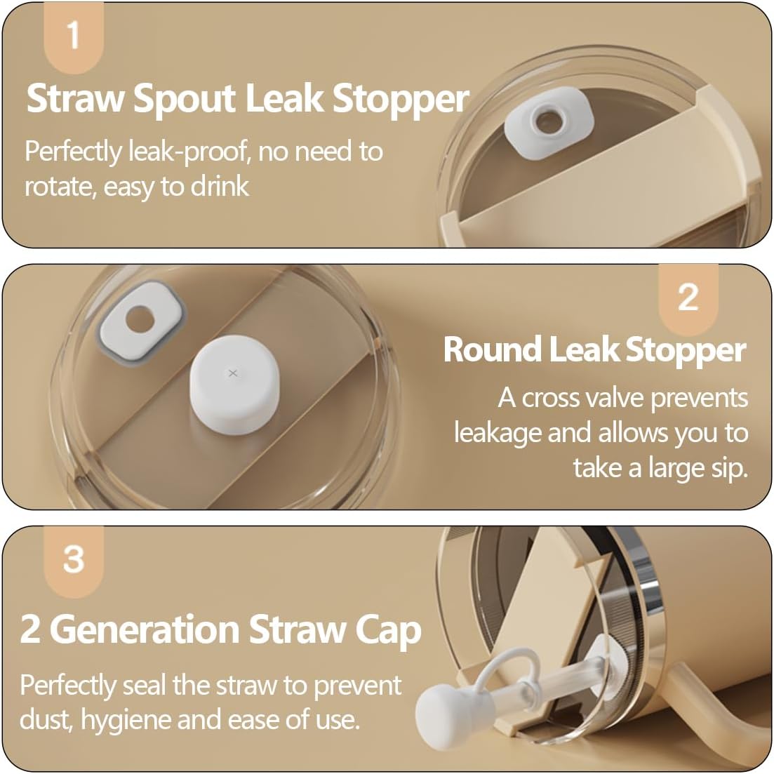PERFECT SPILL-PROOF PLUG: The round spill plug ensures that air enters while drinking, making it easier to drink. The square leak-proof stopper seals the space around the straw to prevent leakage, and the stanley leak-proof stopper prevents drinks from leaking out of the straw. You will never have to worry about leaks again.