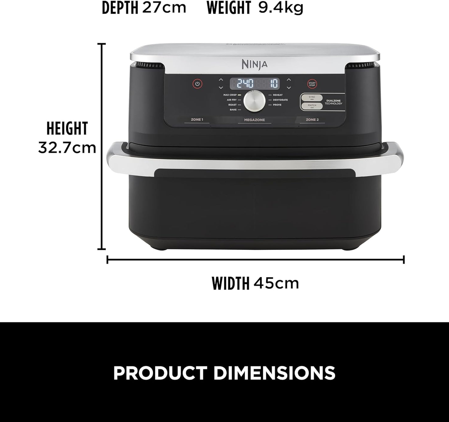 - 7 COOKING FUNCTIONS: Air Fry, Max Crisp, Roast, Bake, Reheat, Dehydrate, Prove. Quick family meals up to 65% faster than fan ovens* (*Tested against fish fingers and sausages, including preheat)