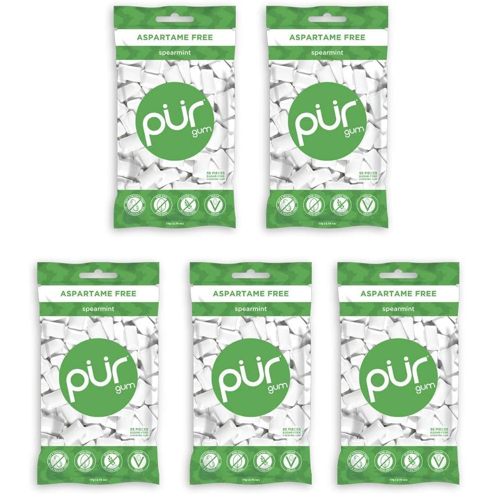 PUR Gum | Sugar Free Chewing Gum | 100% Xylitol | Vegan, Aspartame Free, Gluten Free & Diabetic Friendly | Natural Spearmint Flavored Gum, 55 Pieces (Pack of 1)