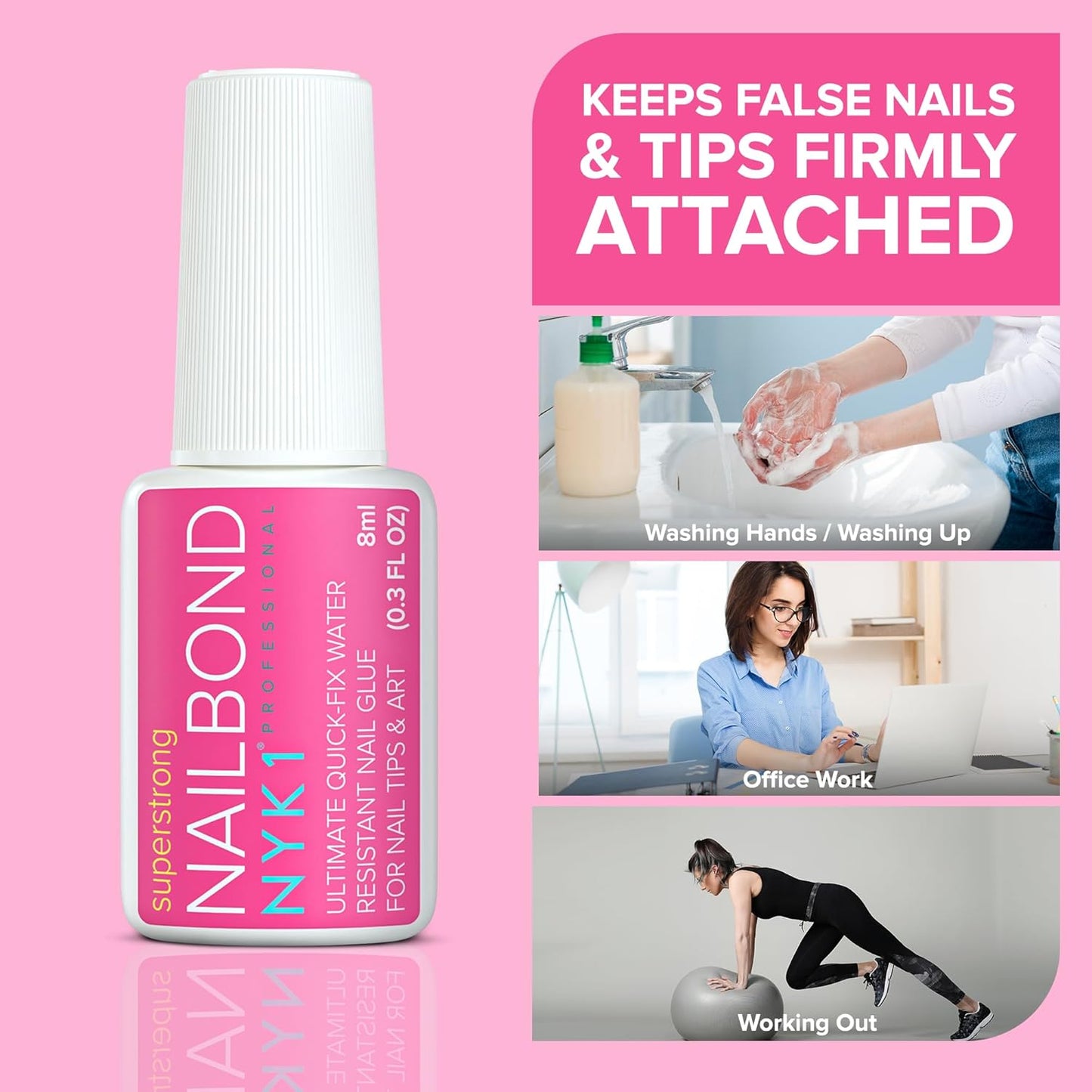 Super Strong Nail Glue For Nail Tips, Acrylic Nails and Press On Nails (8ml) NYK1 Nail Bond Brush On Nail Glue For Press On Nails Long Lasting Nail Glue For Acrylic Nails Fake Nails Tips Nail Glue Gel